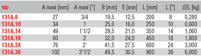 - Kìm ống Facom 131A.18, mỏ lết ống Facom 131A.18 chuyên dùng để siết ống, các chi tiết hình trụ tròn, có độ mở max: 60 mm (2"), chiều dài 450 mm (18").