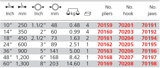 - Vật liệu chế tạo: hợp kim nhôm, có gia cường ở đầu kìm và thanh ren/con trượt để nâng cao tuổi bền của kìm ống Rothenberger 70159.