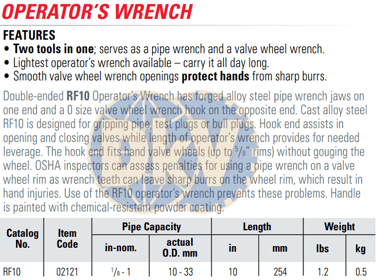 - Mỏ lết răng Reed 02121, Reed pipe wrench heavy duty 02121: chuyên dùng để siết ống, các chi tiết hình trụ tròn, có độ mở max từ: (10 - 33 mm), có chiều dài (254 mm).