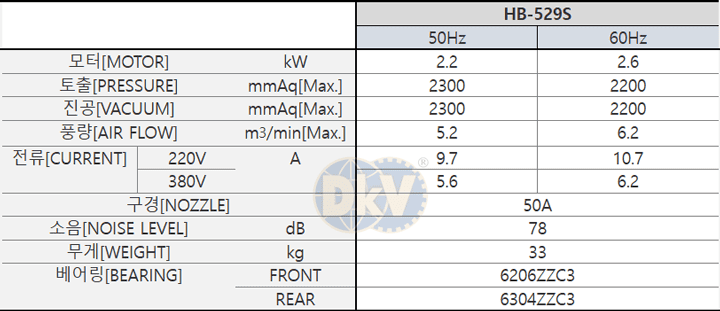 - Máy thổi khí con sò Hae Sung HB-529S, sử dụng động cơ 2.2kW/220V/50Hz/1ph hoặc 380V/50Hz/3ph, quấn dây đồng 100%, độ ồn max: 78 dB(A), sẽ giảm tiếng ồn khi lắp thêm ống giảm thanh tại cổ xả khí. Phân cánh quạt và thân vỏ được chế tạo bằng nhôm, giúp nhẹ và thoát nhiệt tốt.