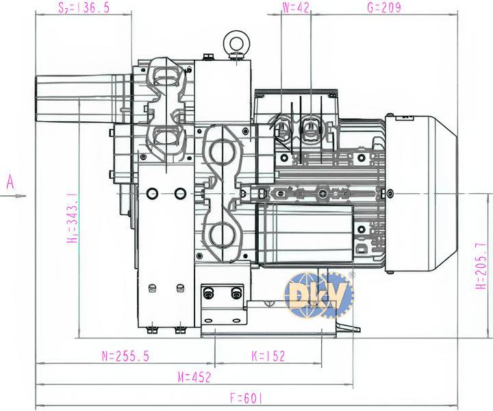 - Cổ hút và cổ xả của máy thổi khí con sò Hae Sung HBT-52077S đều có ren size tiêu chuẩn NPT1-1/4", thuận tiện khi kết nối với đường ống hoặc các phụ kiện (lọc gió đầu vào, ống giảm thanh, valve chỉnh áp....). Dưới đáy chân đế của máy thổi khí con sò Hae Sung HBT-52077S có 4 lỗ khoan Ø 14 mm, thuận tiện khi gá đặt.