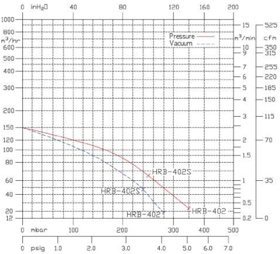 - Máy thổi khí Hwanghae HRB-402MP, Hwanghae ring blower HRB-402MP, Hwanghae slide channel blower HRB-402MP: có hình dạng con sò, thuộc loại 2 cấp - dual satge (2 tầng) do Hwanghae | Korea sản xuất. Máy thổi khí Hwanghae HRB-402MP có lưu lượng max: 2.5 (m3/phút) | 150 m3/giờ, áp thổi max: 3.500 mmAq (350 mbar) | cột áp 3.5 mét, độ chân không: - 2.600 mmAq (-260 mbar), chuyên dùng để hút/thổi khí trong dân dụng và công nghiệp.