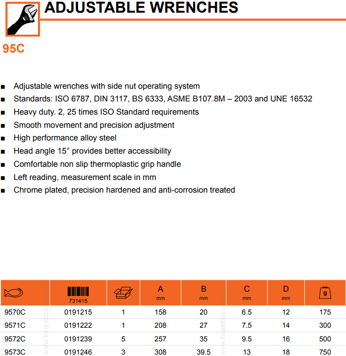 - Mỏ lết Bahco 9571C được chế tạo bằng vật liệu Chrome plated theo tiêu chuẩn ISO 6787, DIN 3117, BS 6333.