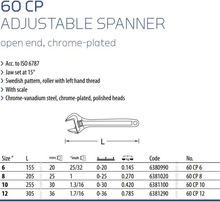 - Mỏ lết Gedore 60 CP 6 chế tạo bằng thép cường lực hợp kim chrome vanadi, có độ dai va đập cao bằng phương pháp rèn dập. Chế tạo theo tiêu chuẩn ISO 6787. Bên ngoài phủ một lớp Chrome mờ, hạn chế chói mắt khi thao tác dưới ánh sáng mạnh.