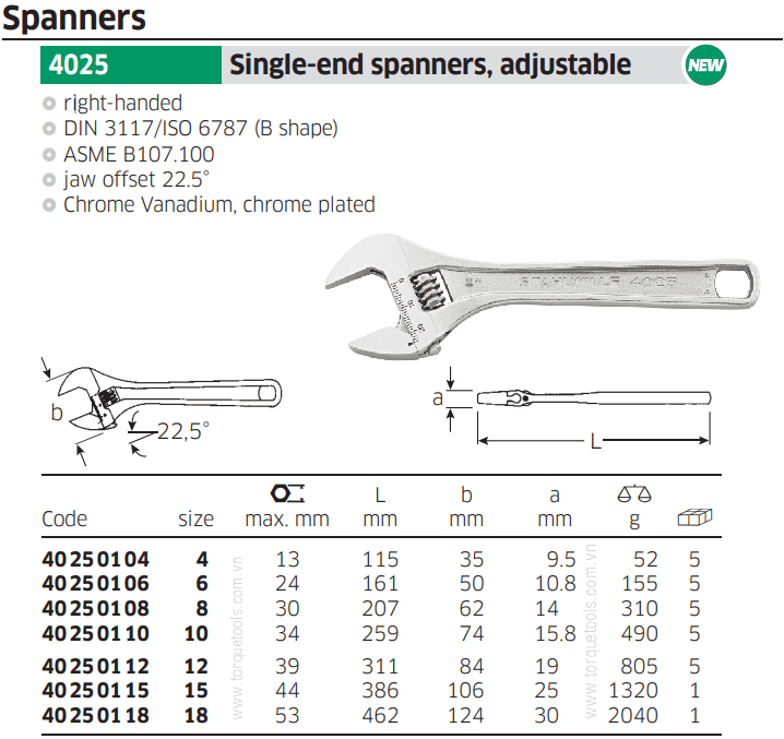 - Mỏ lết Stahlwille 40250106 được chế tạo bằng vật liệu Chrome vanadi theo tiêu chuẩn DIN 3117/ ISO 6787.