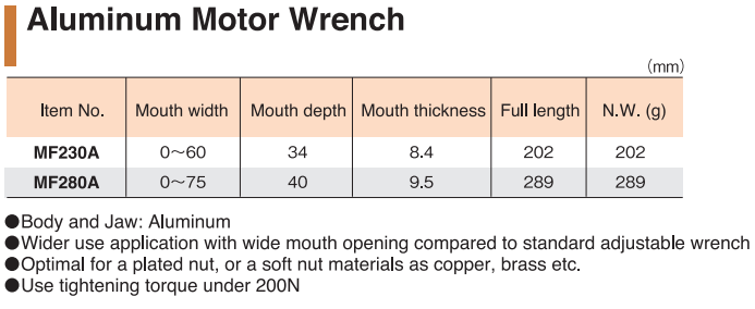 - Vật liệu chế tạo: hợp kim nhôm, có gia cường ở đầu kìm và thanh ren/con trượt để nâng cao tuổi bền của mỏ lết răng Super Tool MF280A.