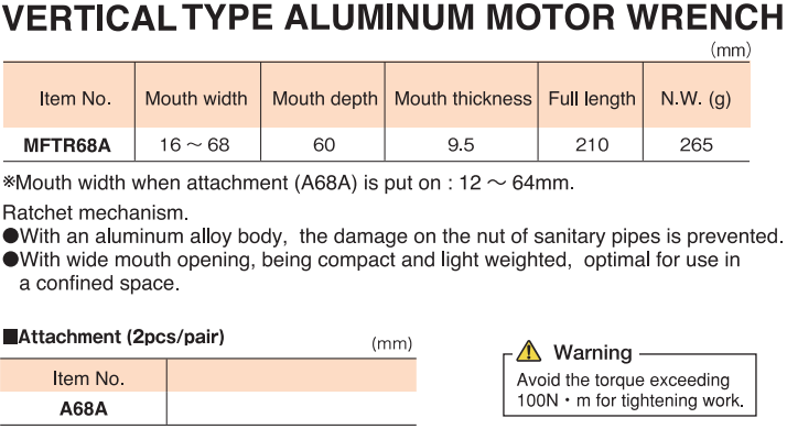 - Mỏ lết Super Tool MFTR68A, mỏ lết ống Super Tool MFTR68A, kìm ống super tool MFTR68A: chuyên dùng để siết ống, các chi tiết hình trụ tròn, có độ mở max: 68 mm , chiều dài 210 mm.