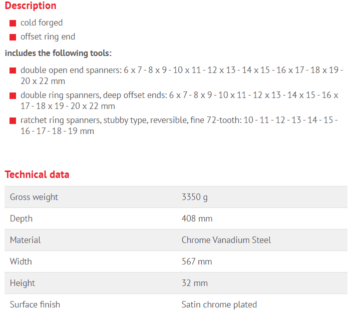 - Cờ lê hai đầu tròng (6-22 mm): 8 chiếc.