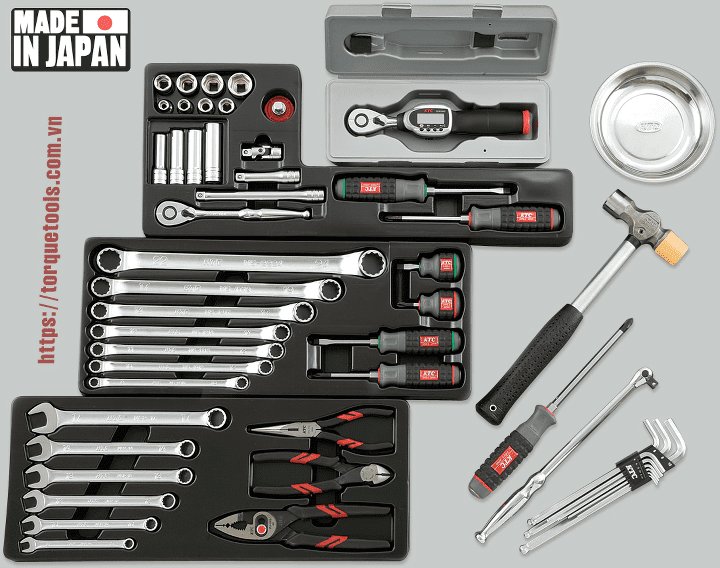 Toàn bộ các chi tiết được đựng trong thùng dụng cụ màu xám KTC SKX0213S có kích thước W520xD215XH300 mm. Trọng lượng tổng thể: 18 kg.