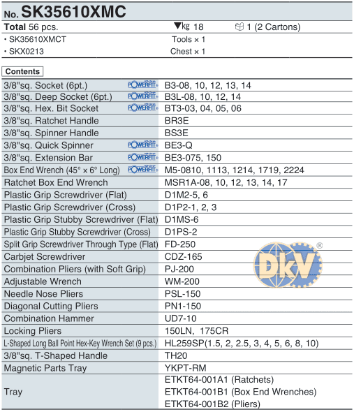 THÙNG DỤNG CỤ KTC SK35610XMC | KTC MECHANIC TOOLS SETS SK35610XMC | 3/8" | 56 chi tiết