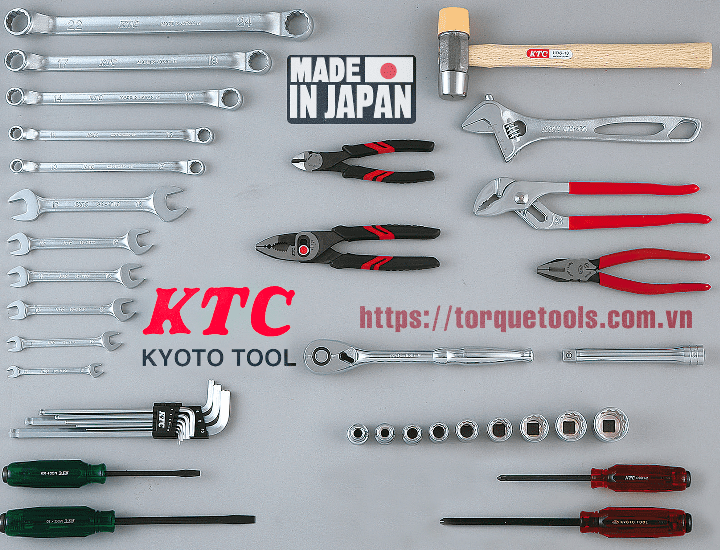 Toàn bộ các chi tiết được đựng trong khay dụng cụ KTC EK-1 có kích thước W430xD225XH225 mm. Trọng lượng tổng thể: 11.5 kg.