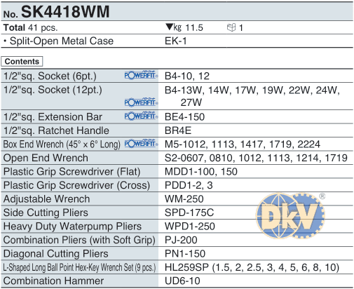 Thùng dụng cụ KTC SK4418WM, KTC mechanic tools sets SK4418WM: là một thùng dụng cụ gồm 41 chi tiết, size cắm khẩu: 1/2", chuyên dùng để siết/vặn bulong, đai ốc, vít,... trong công nghiệp.