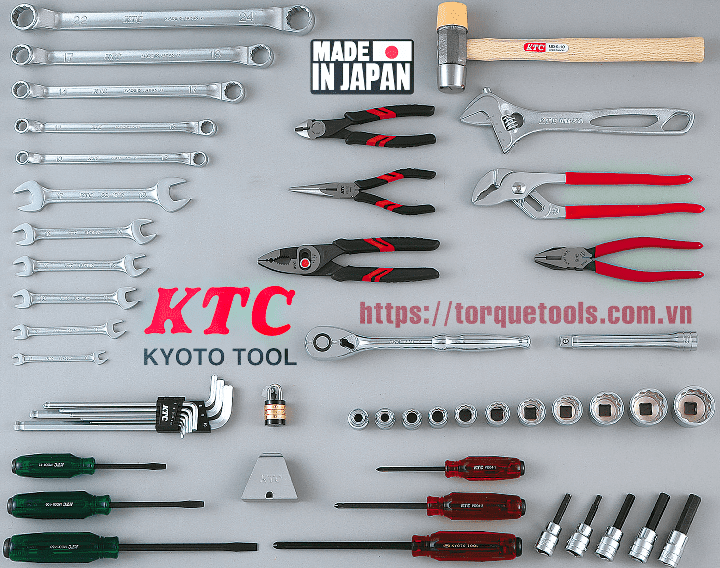 Toàn bộ các chi tiết được đựng trong thùng dụng cụ màu đen KTC SKC-MA có kích thước W460xD230XH280 mm. Trọng lượng tổng thể: 12.5 kg.