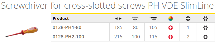 - Tô vít cách điện 4 cạnh NWS 0128-PH1-80 (NWS VDE scewdriver 0128-PH1-80) thuộc loại tô vít siết chính xác, các loại vít theo tiêu chuẩn Phillips PH 1, trong môi trường điện cao thế (< 1.000 V).