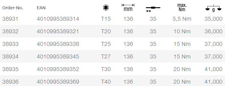 ĐẦU VÍT CÁCH ĐIỆN 6 CẠNH WIHA | WIHA VDE TORCX BIT | T8 - T40
