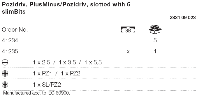 - Tô vít cách điện đa năng Wiha 41235 là tổ hợp của 1 cán tô vít đa năng và 6 đầu vít. Trong đó có 3 đầu vít 2 cạnh (2.5, 3.5 và 5.5 mm), 2 đầu vít 4 cạnh kiểu Pozidriv PZ1, PZ2, 1 đầu vít 4 cạnh kiểu PlusMinius/Pozidriv SL/PZ2. Toàn bộ các đầu vít này đều có chiều dài 75 mm.