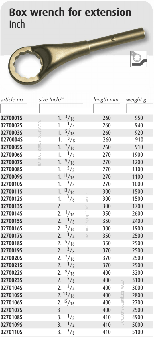 - Cờ lê đóng chống cháy nổ Endres 0270008S, Tròng đóng chống cháy nổ Endres 0270008S (Endres non sparking ring slogging wrench 0270008S) là loại cờ lê đóng, một đầu tròng size: 1.5/8", chiều dài: 270 mm .