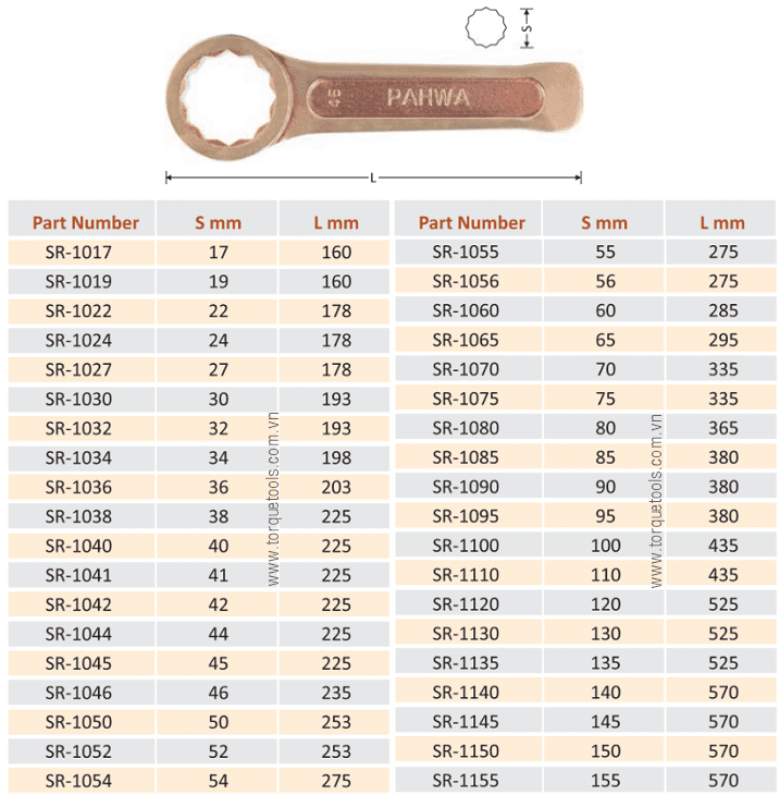 - Cờ lê tròng đóng chống tia lửa điện Pahwa SR-1019 được sẳn xuất từ nhà sản xuất Pahwa tại Ấn Độ. Made in India.